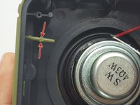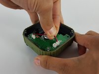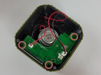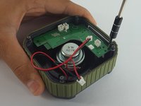 Flip the device over so the front of the speaker is facing down. Make sure to place the speaker on a flat surface