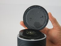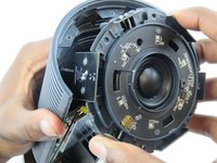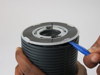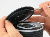 Place the plastic opening tool under the speaker grille, and just above the light ring.
