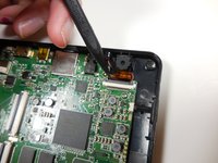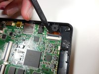 Starting at one corner, gently pry the back panel assembly from the screen assembly using two plastic opening tools.