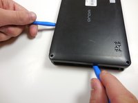 Starting at one corner, gently pry the back panel assembly from the screen assembly using two plastic opening tools.