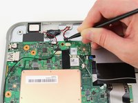 Using the iFixit plastic opening tool or spudger, start near the white hinge of the device and lift along the outer edges of the device until all clips are released.