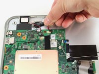 Carefully wiggle the battery cable to the right and out of the port with a plastic spudger.
