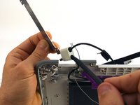 Peel back the antenna cable boards off of the display hinges.