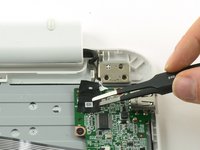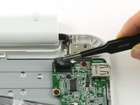 Use tweezers to lift the fabric cover and hinge connector away from the daughterboard.