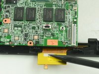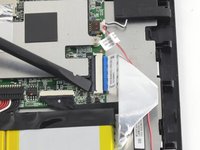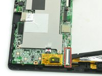Insert the pointed end of the spudger between the cable and the motherboard and gently pull the cable straight out of the connector.
