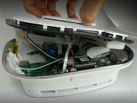 Use a Phillips #0 screwdriver to remove seven screws securing the white base and motherboard.