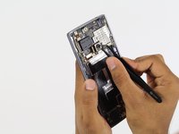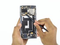 Carefully pry up the mid frame from the back of the phone with the plastic opening tools.
