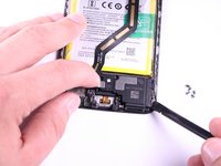 Remove the battery connector cable located to the right of the charging port connector cable using a nylon spudger by prying underneath it and popping it up.