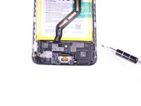 Remove the charging port connector cable to the left of the battery cable using a nylon spudger by prying underneath it and popping it up.