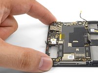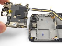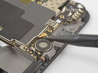 Slide the point of a spudger underneath the antenna interconnect cable that is connected to the motherboard above the vibration motor.