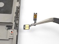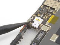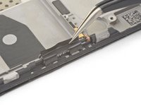 Use tweezers or the point of a spudger to pry up and remove the black tape covering the volume buttons on the right edge of the phone.