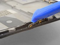 Use the edge of an opening tool to gently pry the volume button board away from the frame.