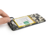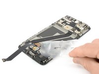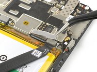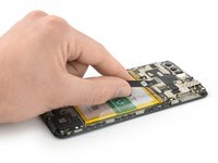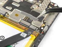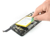 Use a pair of tweezers to remove the small metal shield which covers the battery and the charging port and headphone jack flex cable connectors.