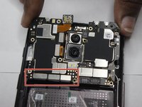 Using a fingernail, carefully work under the edge and pry the motherboard up from the phone.