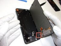 • Use a pair of tweezers to gently pull up on the red tab and disconnect the cable from the device.