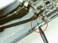 After the battery has been removed, use the spudger to disconnect the remaining ribbons.