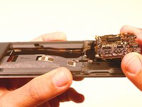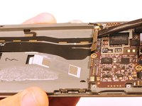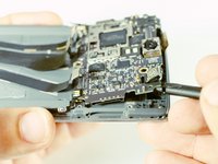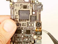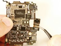 Once the motherboard has been removed simply pry off the rear facing camera with a spudger or angled tweezers.