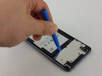 Using the plastic opening tool pry the upper motherboard. Carefully pry it up until you can safely remove the upper motherboard completely.