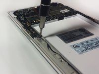 On the right side, there are two motherboard connections hidden underneath the motherboard. For these, insert the spudger in between the motherboard and the connection and rotate the spudger in a rocking motion until the two cables are disconnected from the motherboard.