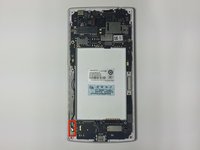 Start from the top of the large motherboard. Carefully pry the motherboard off until it is no longer connected to the phone.