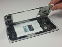 With your finger, remove the battery from the phone by gently lifting the top-right corner nearest to the camera.