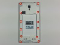 Remove the twelve exposed 3.6 mm Phillips screws on the rear of the phone using the 3.6 mm Phillips screwdriver.