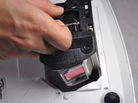 Use a Phillips #1 screwdriver to loosen the two screws securing the black casing.
