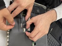 Remove the four 2 mm Phillips screws that secure the motherboard.