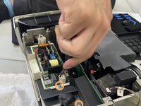 Remove the two 2 mm Phillips screws that secure the power supply.