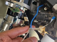 Remove the single 2 mm Phillips screw that secures the circuit board to the side of the color wheel.