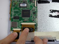 Use the flat end of the spudger to lift and remove the black tape covering the ribbon connection tab.