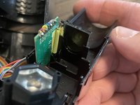 After you disassemble the projector case, you can see the projector light, the passthrough display and the board that powers it.