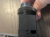 Pull on the projection assembly to detach it from the case. The top part, containing the lens is detachable by hand, the bottom one has 3 clips and a nut that secures it.