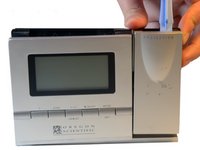 Turn the clock on its side. Slide the Focus Knob forward with your thumb.