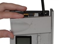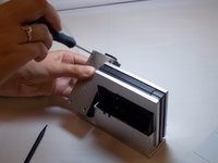 Use a plastic opening tool to pry apart the front of the projection arm casing. Start at the top of the projection arm.