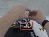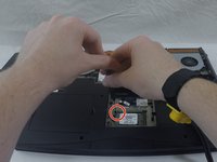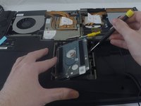Remove the small screw on the upper left of the hard drive.