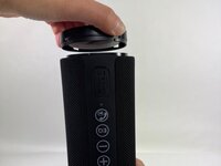 Firmly grip the top of the speaker, stabilize the base, and twist the cap counterclockwise to loosen and remove. Repeat this step for the bottom cap.
