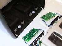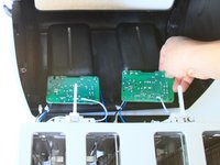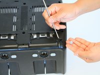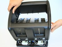 Use the plastic opening tool to remove the top metal panel by prying the 4 top metal tabs upwards. They will be able to slide through the openings and be pulled upwards.