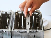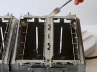 Once the top metal panel is unhooked, lift and let it hang off the side of the toaster.