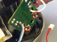 Desolder the power cord from the circuit board at the locations show in the diagram.