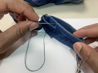 Using the needle, tie two to three simple, overhand knots to secure the stitching and cut off remaining slack.