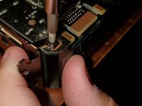 Using a Philips #00 screwdriver, unscrew the two screws holding the video card in place.