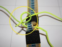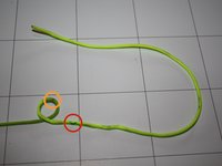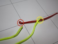 To open the looped through connection of the lines first pull the open end of the yellow line all the way through the loop of the red line