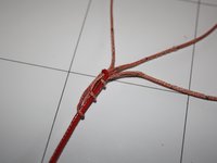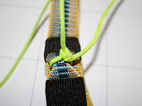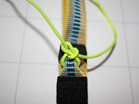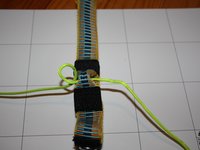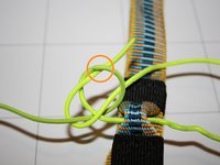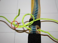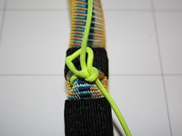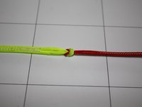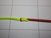 After the line has been pulled through the loop of the red line, pull the red line through the loop of the yellow line from the side that goes further up to the glider to remove it from the yellow line