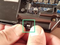 Pull the lever circled in red in the direction of the red arrow while pressing on it.