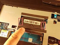 Lift the battery while unlocking the lock circled in red.