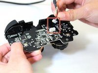 When the solder has completely melted, flip the controller and gently pull the wire free from the motherboard.
