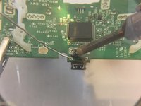 To remove the defective charging port, you will need to de-solder the 9 pins holding the port to the motherboard.