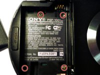 Remove the screw from the bottom side of the PSP. Keep it separated from the rest of the screws.