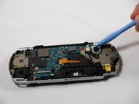 Lift the black tabs of the ribbon cable connectors using a opening tool. Pull the ribbons out towards the bottom of the PSP to disconnect.